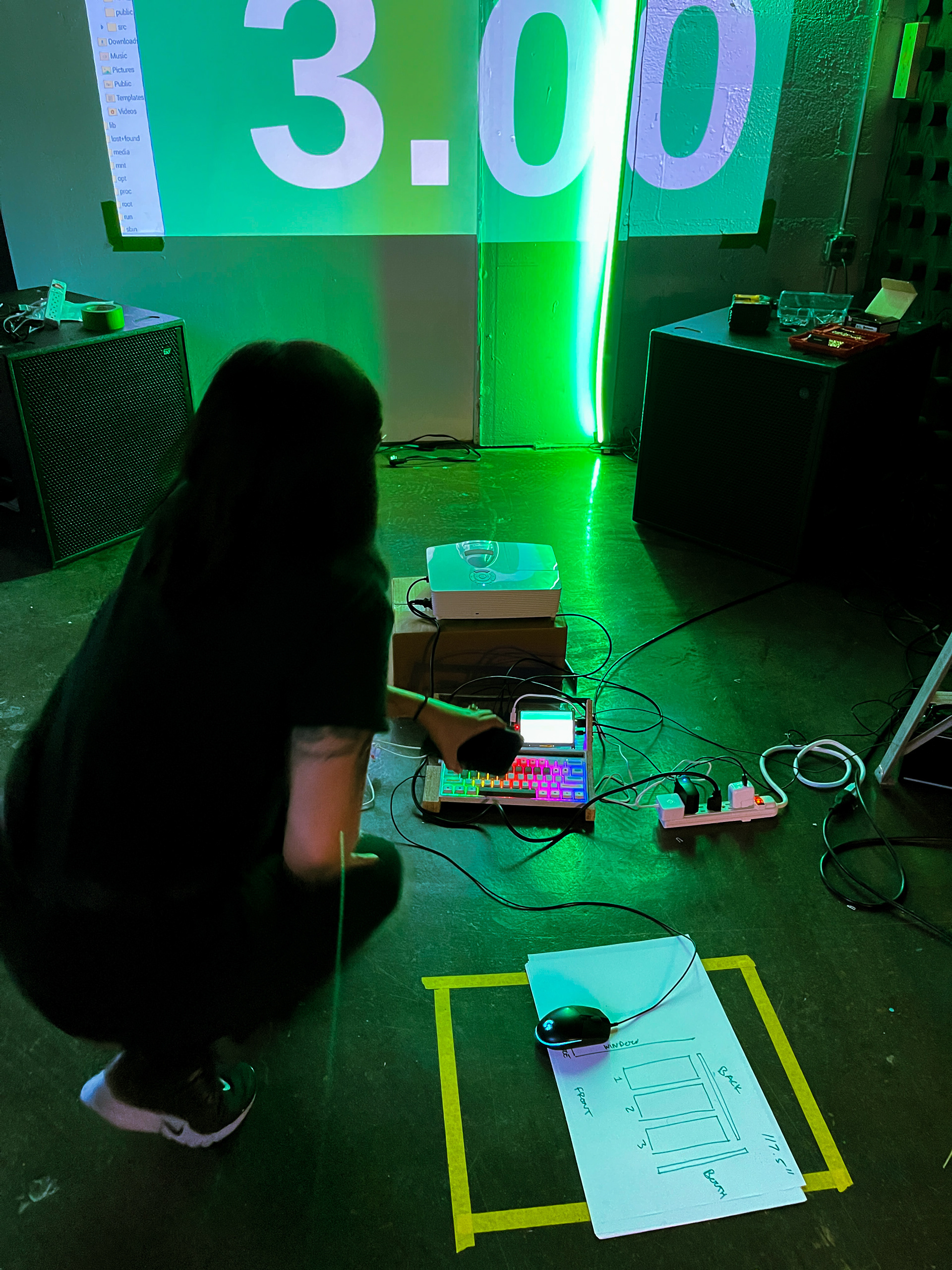 Once the wiring was complete and she ran some tests, she booted up the program and started dialing in the projection