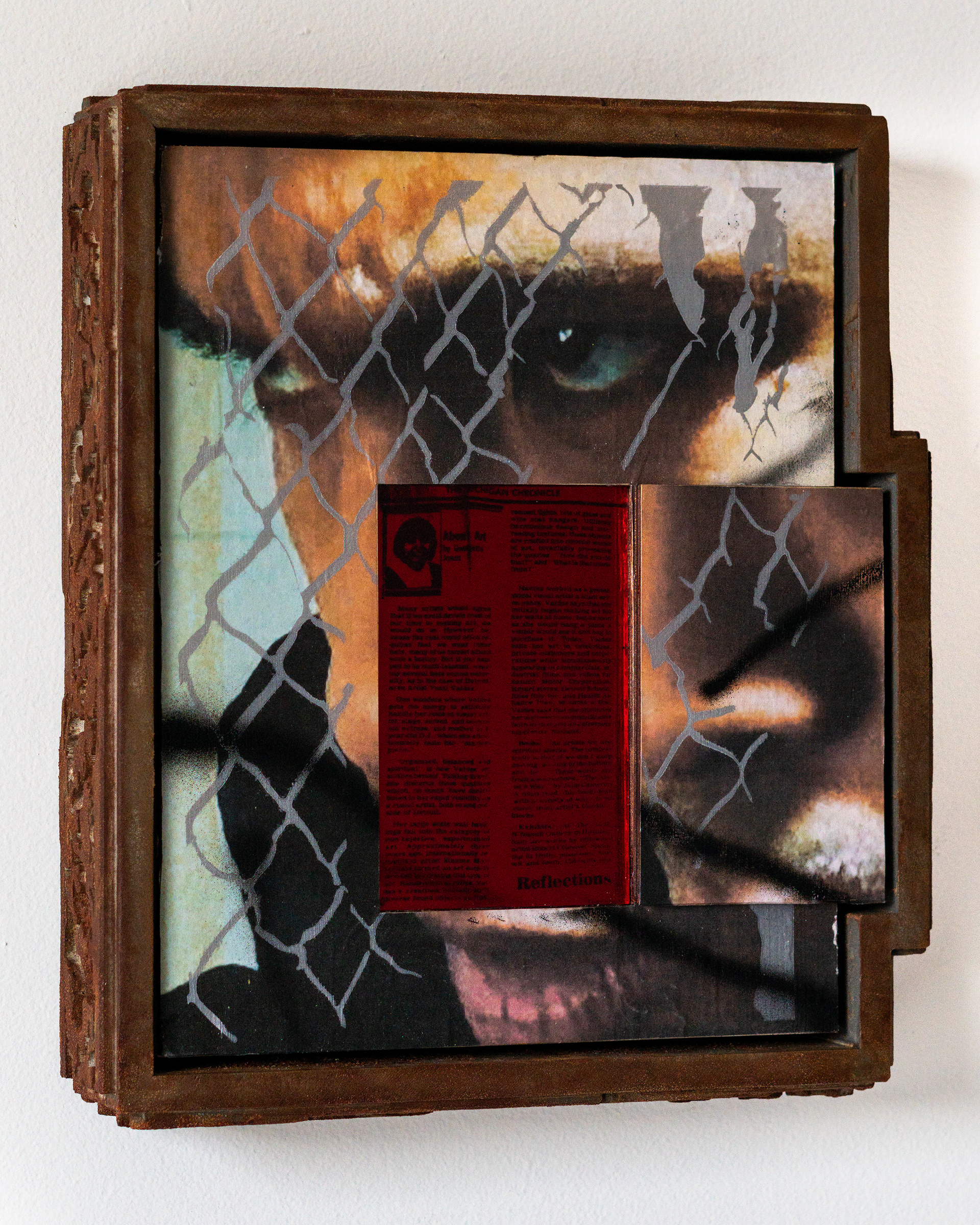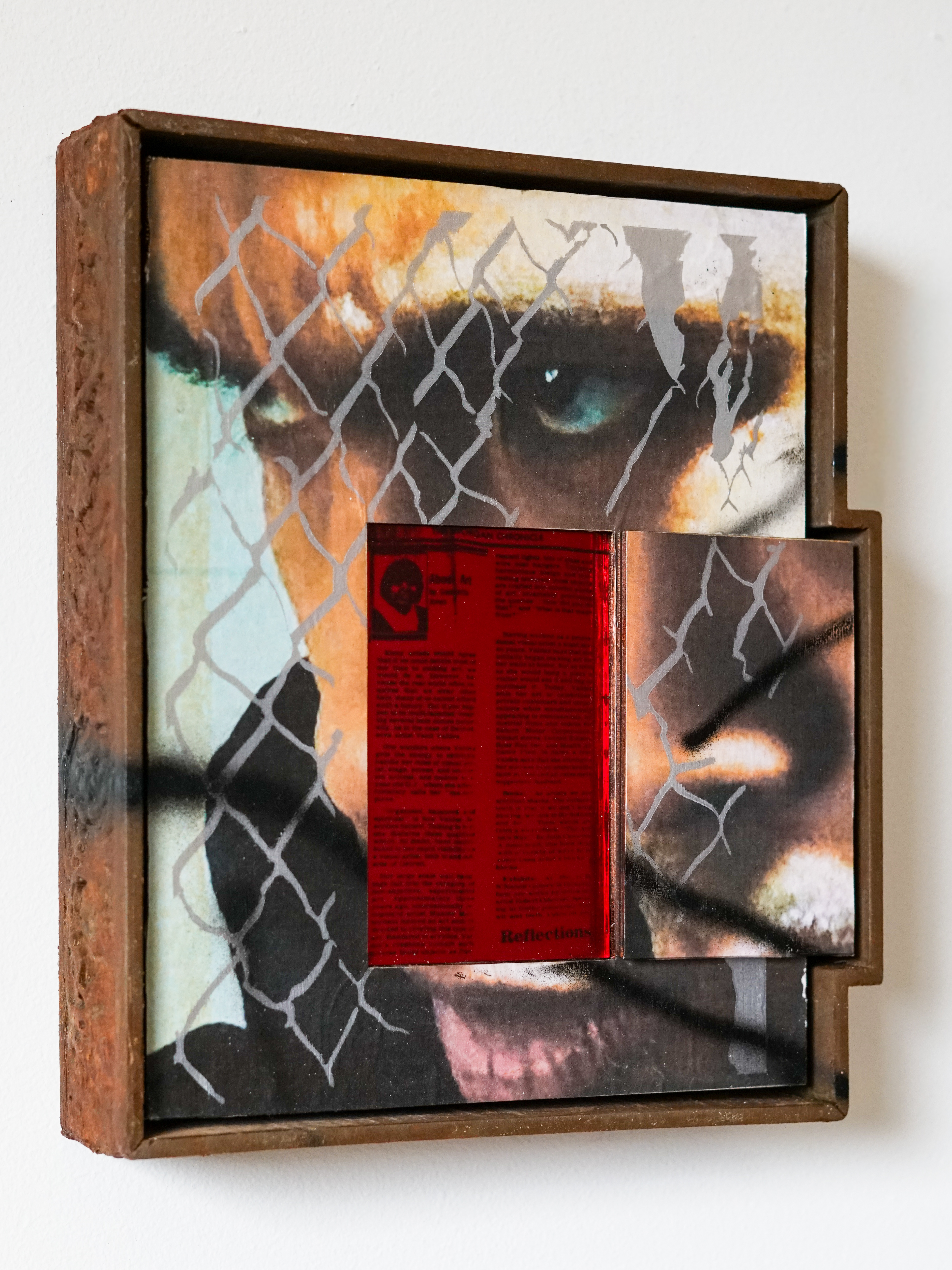 Archival Ink Print, adhesive, Laser Cut wood, Laser cut and etched Mirrored Acrylic, Acrylic Paint.