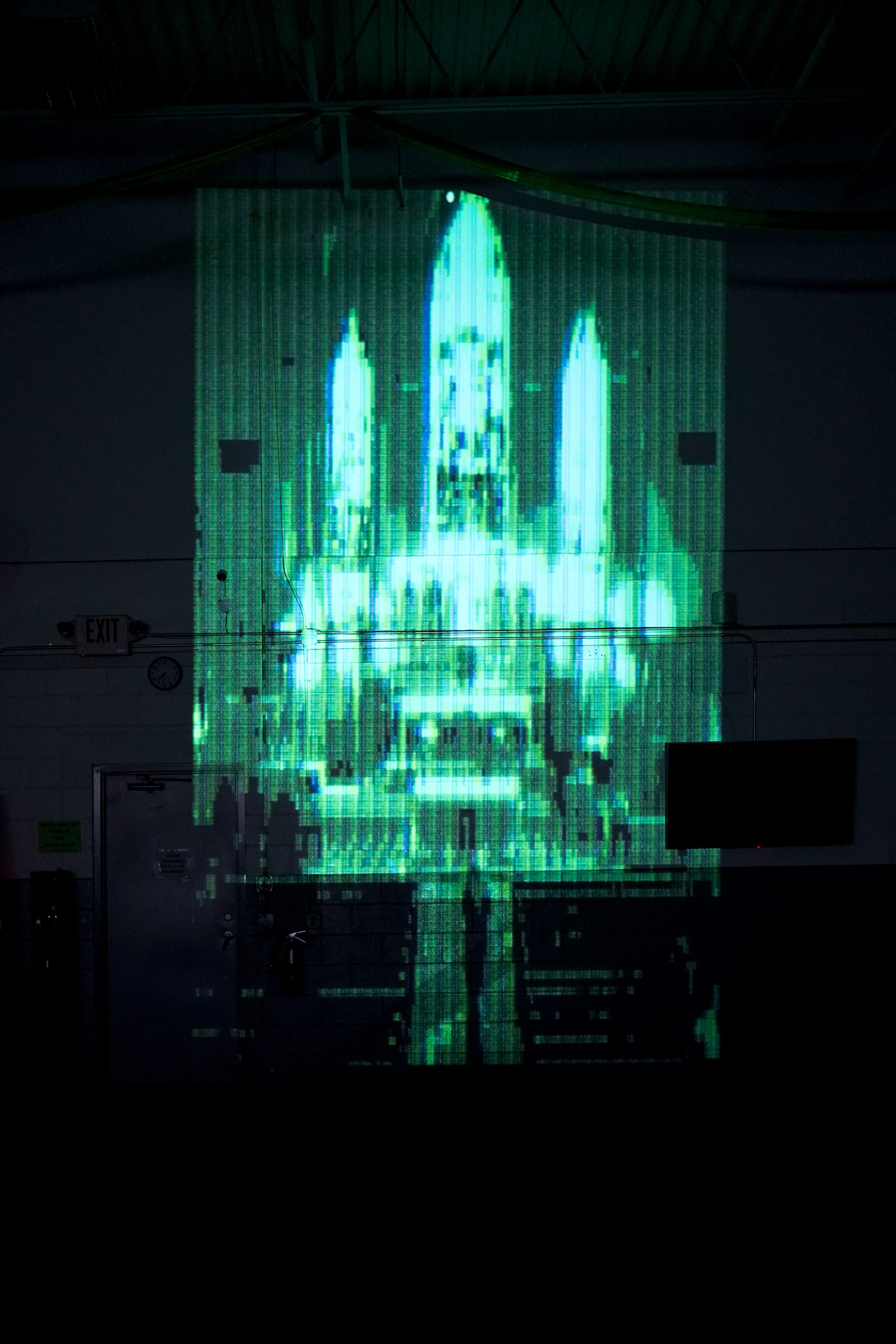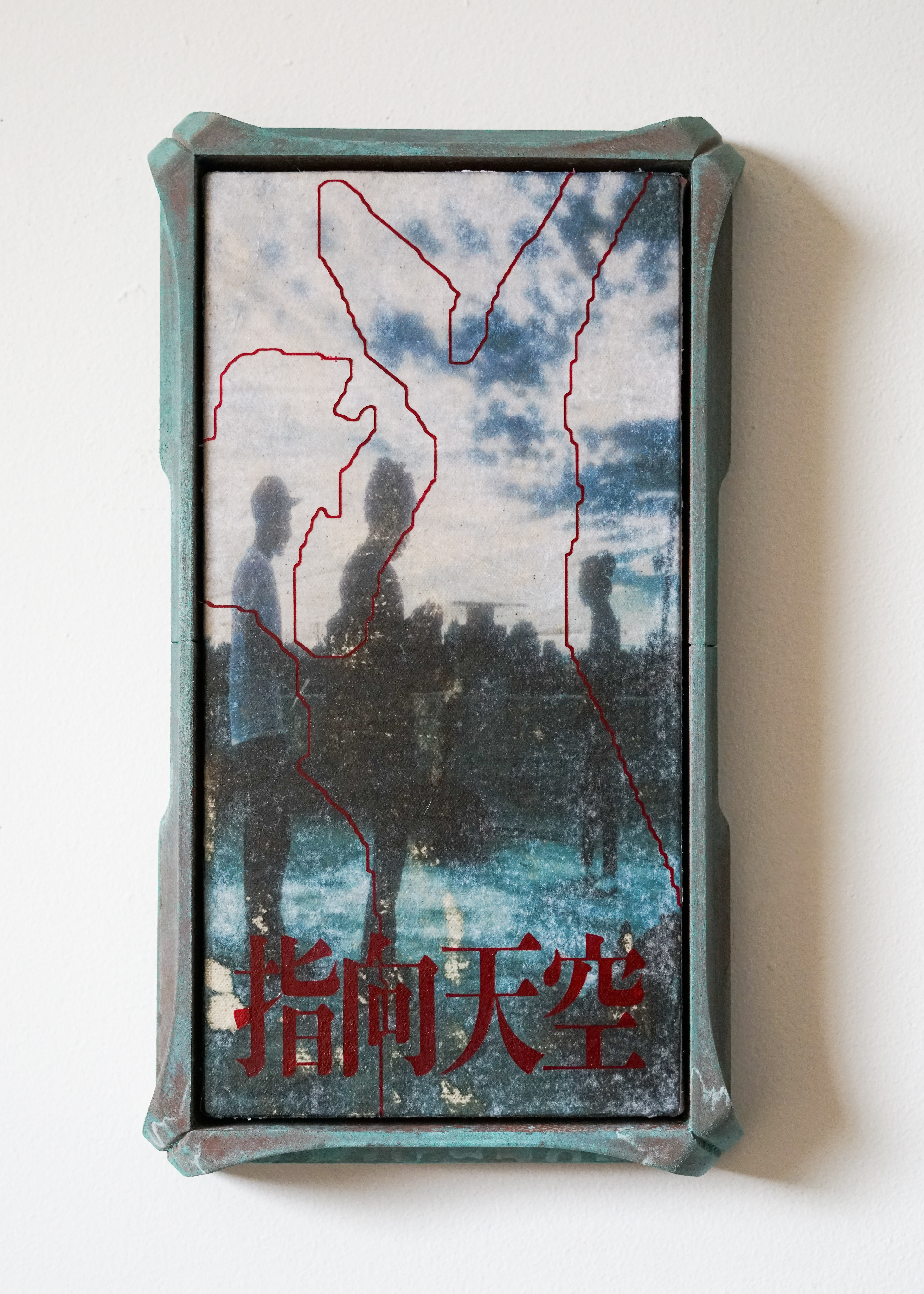 Pigment transfer, acrylic paint and medium on canvas.
