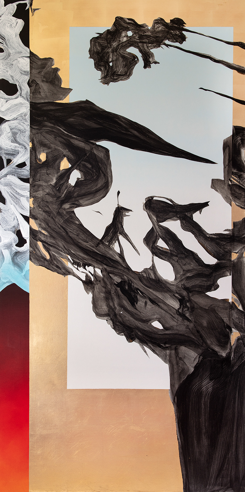 Acrylic, Spray Paint, and Metal Foil on Canvas